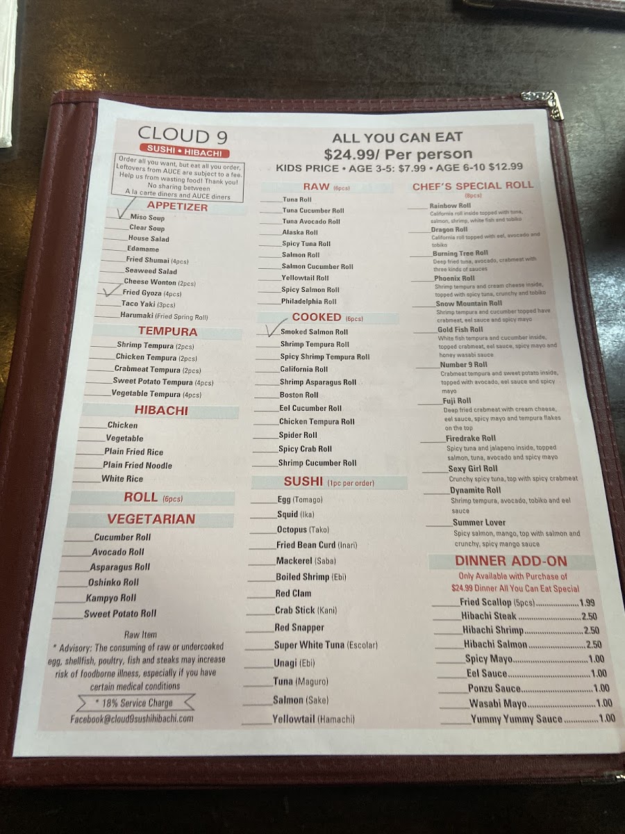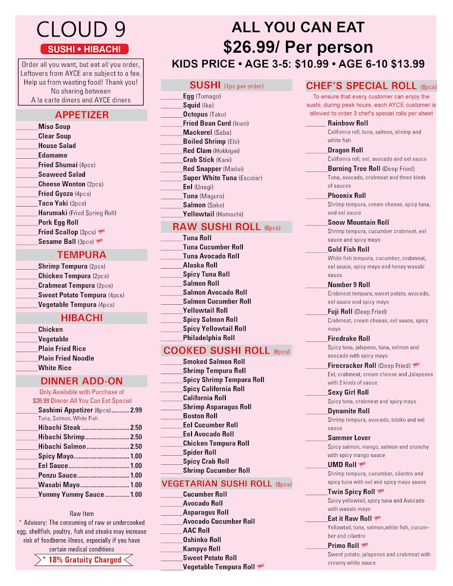 California roll.shrimp tempura roll.spicy tuna roll.