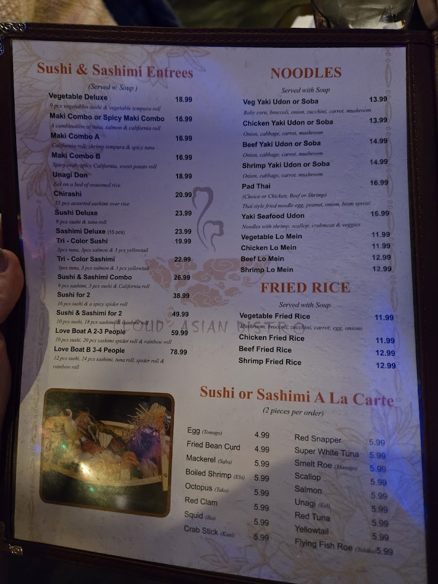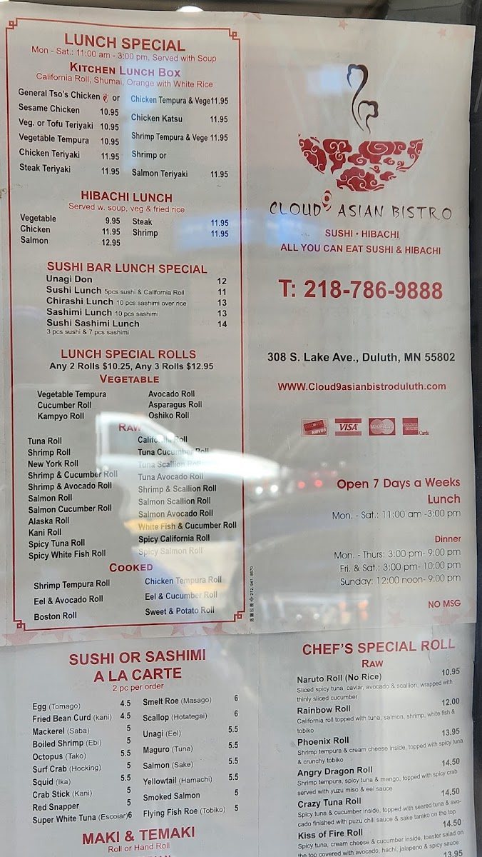 Shrimp tempura,cucumber inside,topped with salmon ,tuna,super white tuna,yellowtail and avocado,with eel sauce &spicy mayo crunch on the top